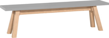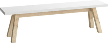 Klupa je duga 170 cm, visine 36 cm i visoka 46 cm. Sjedalo može biti bijelo, sivo ili hrastovo, a noge su boje hrasta.