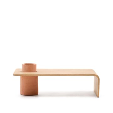 Klubski stolić Olaria spaja prirodni hrastov furnir i terakotu u jedinstvenom dizajnu s zaobljenim rubovima. Posebnost stolića je postolje koje se može koristiti kao cvjetni lonac, dodajući funkcionalnost i stil vašem domu.