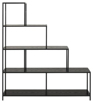 Polica za knjige Seaford s stepenastim oblikovanjem donosi modernu i elegantnu notu u svaki dom. S policama u izgledu crnog pepela i čvrstim metalnim postoljem od mat crnog prašno lakiranog čelika, ovaj policnik spaja industrijski stil s elegantnim izgledom. Njegov asimetrični dizajn omogućava da služi kao stilski naglasak u prostoru ili čak kao pregradni element koji razdvaja prostor na više zona.