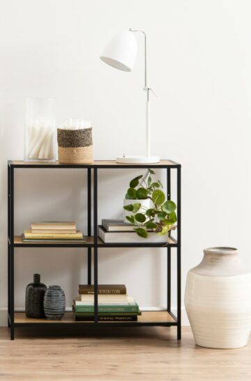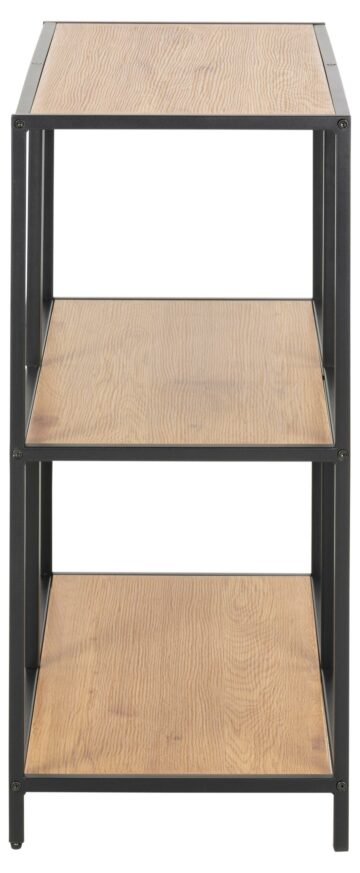Poličar Seaford sastavljen je iz iverne ploče zaščtićene sa folijom u nijansi divljeg hrasta. Sadrži policu i dodatno ojačanje u centru zbog kojeg nečete imati briga oko odlaganja težih stvari. Okvir poličara sastavljen je iz metala i prašno lakiran u crnu matiranu boju.
