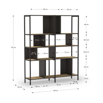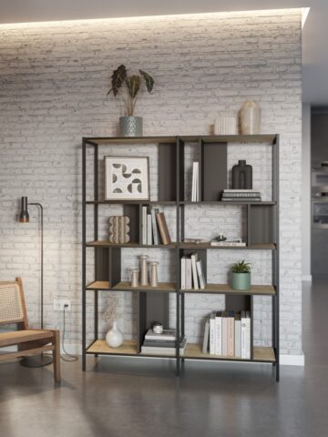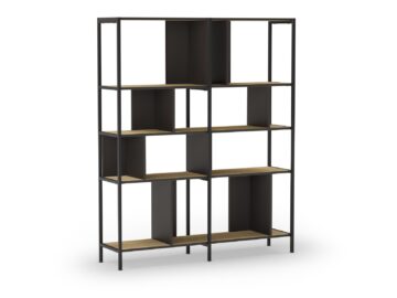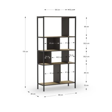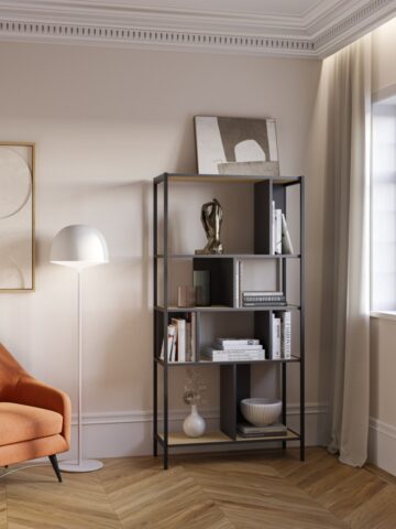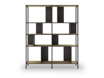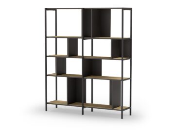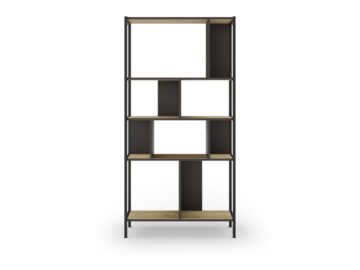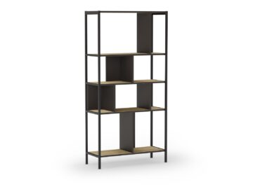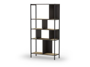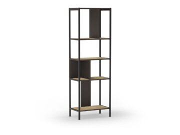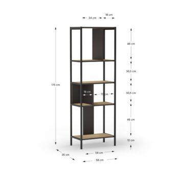 Elegantni i praktični regali Alabama u kombinaciji svijetlog hrasta i crnog metala dostupni su u tri različite širine. Pogodni su za dnevne boravke, urede ili hodnike gdje je potreban dodatni prostor za odlaganje.