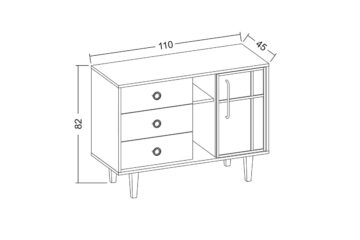 - Dimenzije: širina 74 cm, dubina 45 cm, visina 102 cm. Ove dimenzije omogućuju dovoljno prostora za pohranu, a osiguravaju da komoda ne zauzima previše prostora u sobi.