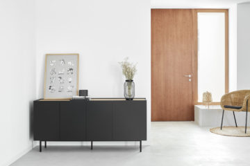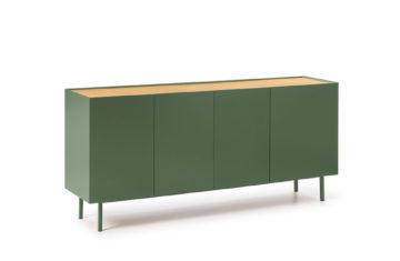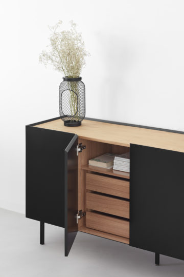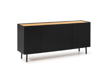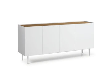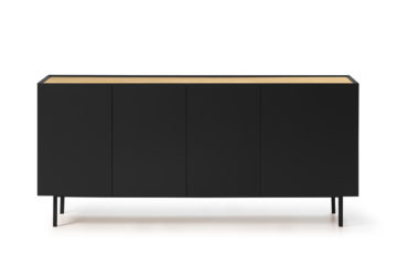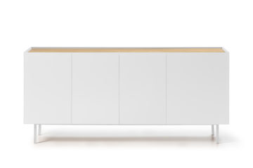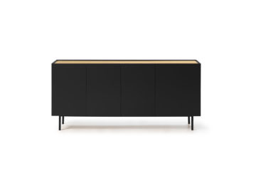 Komoda Arista izrađena je od lakirane MDF ploče. Njezin izgled dopunjuje furnir prirodnog hrasta. Metalne noge visine su 18 centimetra. Maksimalna nosivost komode je 40 kg.