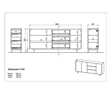 - Sveukupno: Š 190 cm x V 88 cm x D 40 cm.