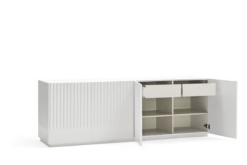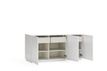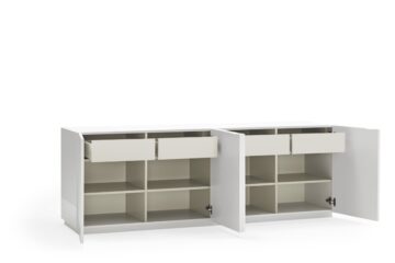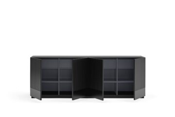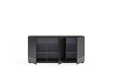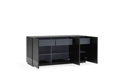 Komoda Doric predstavlja vrhunski primjer spajanja klasične elegancije i moderne funkcionalnosti. S lakiranom crnom vanjštinom, sivom unutrašnjošću i čistim geometrijskim linijama, ova komoda donosi dašak profinjenosti u svaki prostor. Zbog prostrane unutrašnjosti s ormarićima i ladicama idealna je za organizaciju vašeg doma.