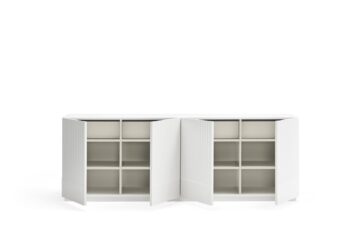 - Četverokružna komoda s četiri vrata iza kojih se nalaze četiri unutarnje ladice i prostrane police za pohranu.