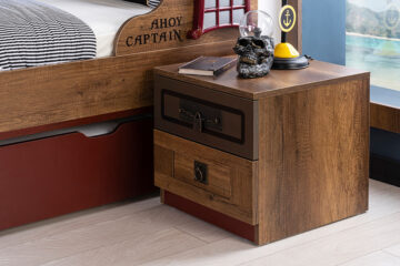 Mala komoda Mornar iz Mornar kolekcije dječjih i mladenačkih soba osmišljena je kao praktičan i estetski dodatak koji odražava avanturistički duh i dinamičnost morske tematike. Ova kompaktna komoda nudi učinkovito rješenje za pohranu, a istovremeno svojim ukrasnim detaljima i toplim bojama drva pridonosi ugodnoj atmosferi prostorije.