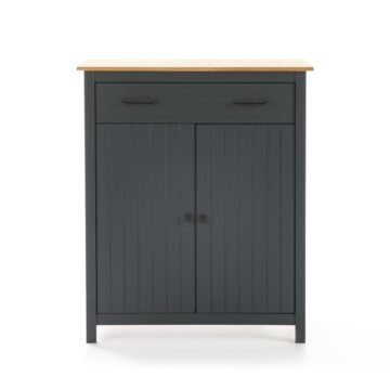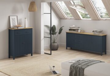 Komoda MIRANDA izrađena je od masivnog bora, što osigurava njezinu izdržljivost. Sa svojom tamnoplavom bojom savršeno se uklapa u različite prostore, poput spavaće sobe, dnevnog boravka ili hodnika. Dimenzije (90 x 110 x 40 cm) pružaju dovoljno prostora za pohranu.