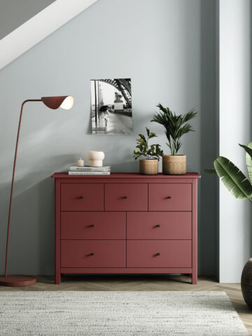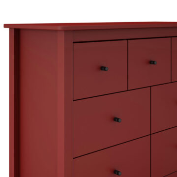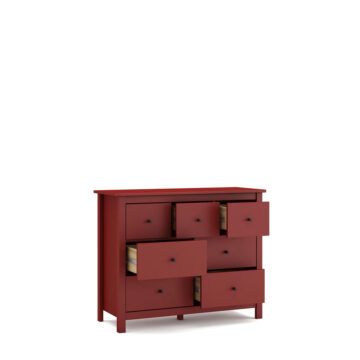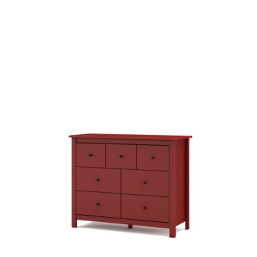 Komoda Misti, koja je dostupna u dvije verzije sa šest ili sedam ladica, izrađena je od visokokvalitetnog bora i dostupna je u tri atraktivne boje: plavoj, crvenoj i kaki zelenoj 444C. Ova svestrana komoda odgovara različitim prostorima i potrebama za pohranu.