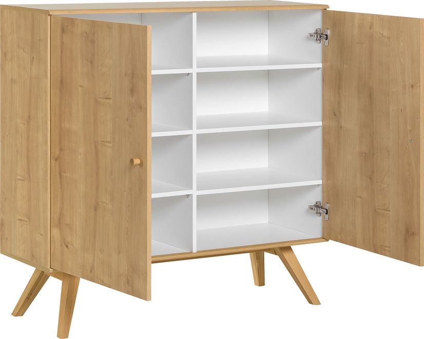 Kod komode Nature dominiraju priordan i minimalističan izgled. Postolje je boje hrasta, unutarnjost je bijela. Iza para vrata ima šest polica. Izrađen je od oplemenjene iverne ploče zaštitene melaminom.