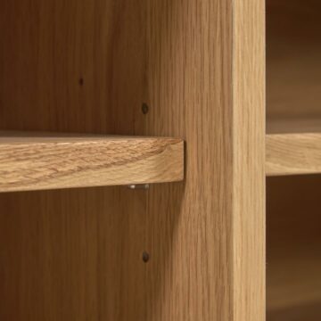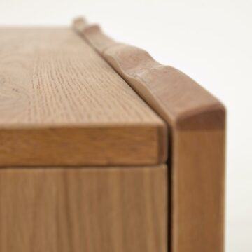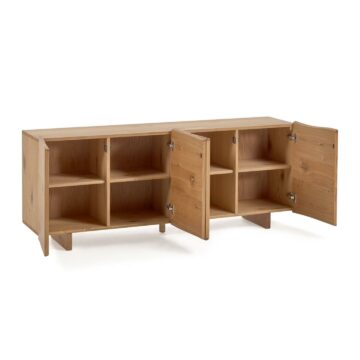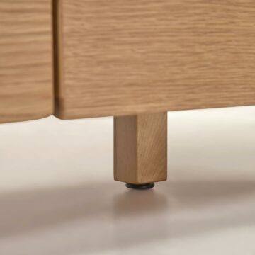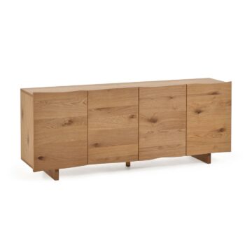 Elegantna komoda Rasha odlikuje se prirodnim i prilagodljivim izgledom. Izrađena je od recikliranog hrastovog furnira i melaminsko zaštićene MDF ploče. Ima puno prostora za spremanje. Dobavljiva je u dvije verzije, koje se razlikuju u širini.