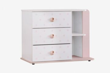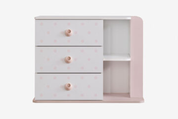 Komoda iz kolekcije dječjih soba “Roza Montessori” praktičan je i estetski savršen komad namještaja koji spaja funkcionalnost i moderan dizajn. Ova komoda idealna je za odlaganje odjeće, igračaka i ostalih potrepština u dječjoj sobi.