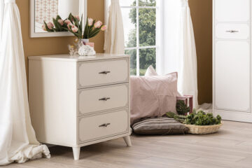• Funkcionalnost ladica: Komoda ima tri ladice opremljene sistemom mekog zatvaranja, što omogućuje tiho i neometano korištenje. Ladice s mekim zatvaranjem posebno su prikladne u tihim spavaćim sobama.