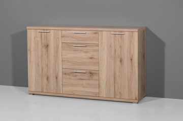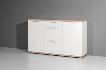 Komoda je izrađena od iverala s folijom bijele ili sanremo hrast boje s “touchwood” površinom. Ima tri ladice i dvoja vrata sa sistemom mekog zatvaranja. Rubovi komode su ABS (zaobljeni) a ručke su metalne.