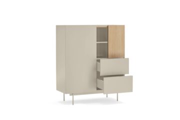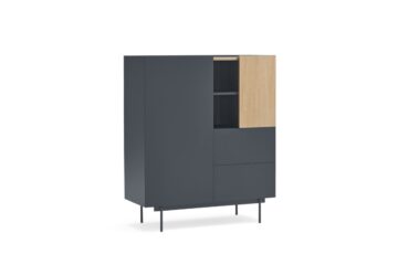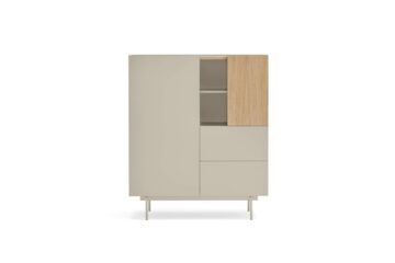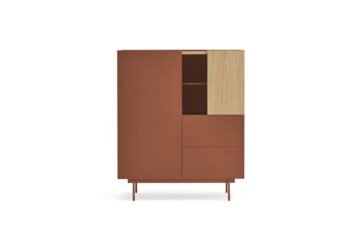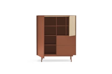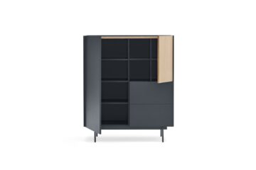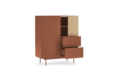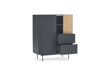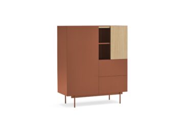 Uspravna komoda Otto spaja moderan dizajn s iznimnom funkcionalnošću. Njene čiste linije, naglašeni detalji u boji i prirodni elementi furnira unose eleganciju u svaki prostor, dok različite konfiguracije za pohranu osiguravaju praktičnost u uporabi.