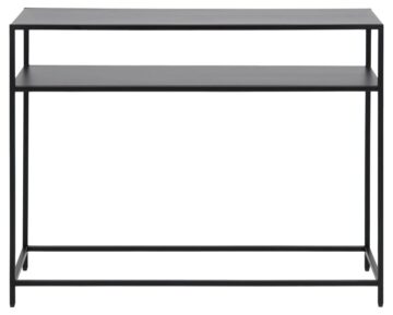Konzolni stolić Newcastle jednostavno je, ali istovremeno dekorativno rješenje za svaki prostor, bilo da se radi o hodniku, dnevnoj sobi ili garderobi. S modernim dizajnom i čistim linijama donosi industrijski ugođaj, zahvaljujući metalnoj podlozi i policama s praškastim premazom. Ovaj stolić idealan je za izlaganje knjiga i dekorativnih predmeta ili za praktičnu pohranu ključeva i naočala.