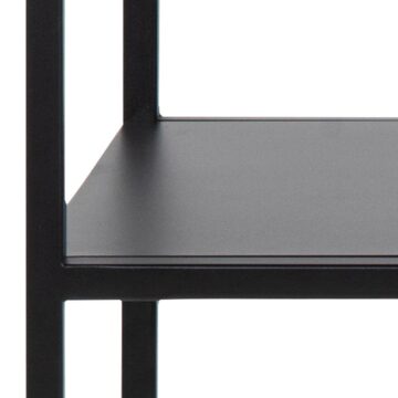 - Materijali: Vrh, police i podnožje od mat crnog praškasto premazanog čelika, što osigurava trajnost i industrijski izgled.