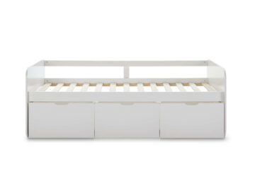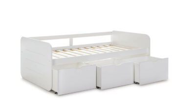 Ispod kreveta, koji ima podnicu od letvica, nalaze se tri prostrane ladice.