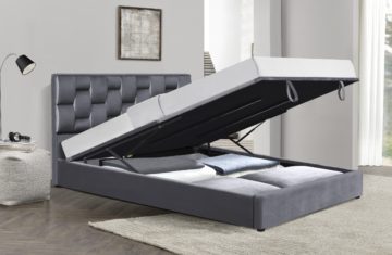 Tapeciran krevet ANNABEL pogodan je za madrac dimenzija 160 x 200 cm. Izrađen je od masivnog drveta prekrivenog sivom tkaninom. Ispod madraca je velika ladica, kao što je prikazano na slici. Ladica je izvrsna za odlaganje posteljine i osobnih predmeta. Tapeciran krevet je univerzalne boje i odgovarat će svim vrstama već postojećeg namještaja. Težina joj je 79,4 kilograma.