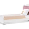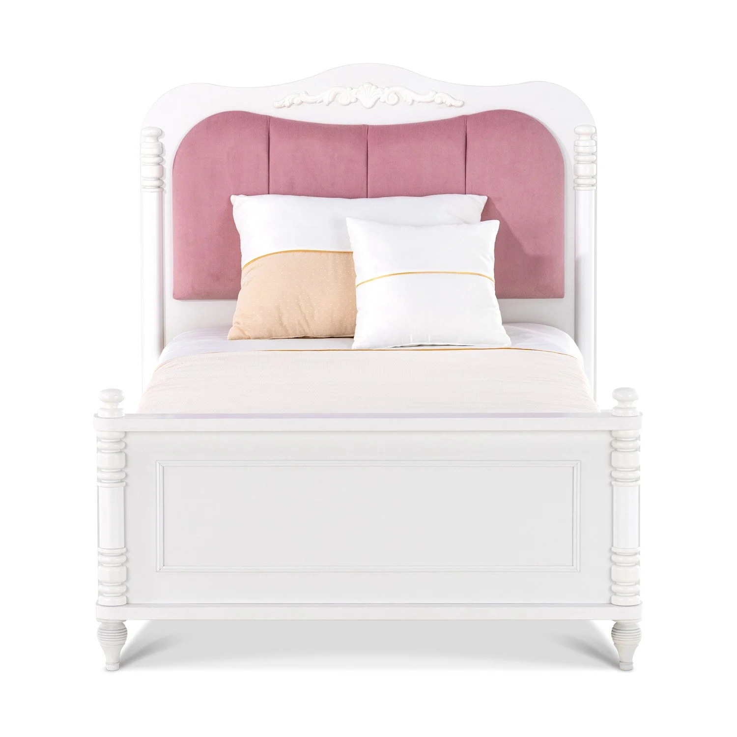 Krevet Lancastre odlikuje se elegantnim izgledom, postignutim viktorijanskim dizajnom i tapeciranim uzglavljem. Sastavljaju ga okvir i krevetno dno, oboje izrađeni od oplemenjene iverne ploče E1 kvalitete, te noge od pvc mase.