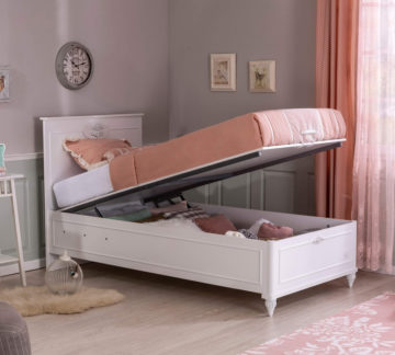 Krevet Romantica unutra skriva ladicu do koje se lako pristupa sa ručkom sa strane. Dostupan je za madrace dimenzije: 100 x 200 cm i 120 x 200 cm. Krevet je dostupan u klasičnoj bijeloj boji i zaštićen je sa melaminom, koji je otporan na ogrebotine i prašine.