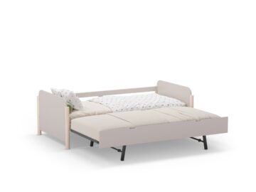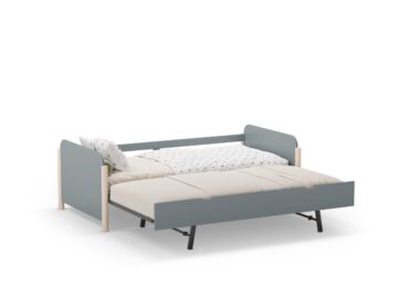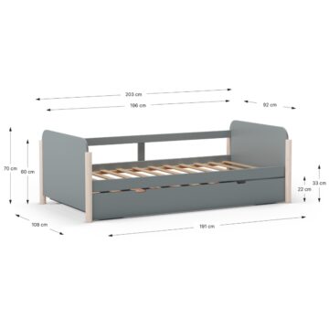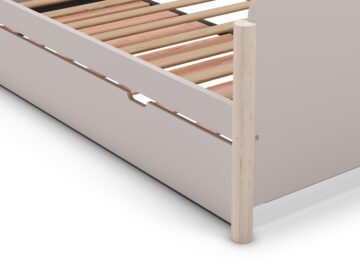 Dječji krevet Enola izrađen je od izdržljivog masivnog bora, što osigurava dugotrajnost i stabilnost. Krevet ima izvlačni donji ležaj s uključenom letvičastom podnicom, pružajući dodatni prostor za spavanje ili pohranu. Dostupan je u različitim kombinacijama boja, koje se lako uklapaju u razne stilove soba.
