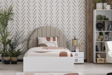 - Estetski sklad: Tapeciran drveni krevet je dizajniran u skladu s vizualnom tematikom kolekcije “Space”, što znači da se svojom estetikom i koloritom skladno uklapa s ostalim elementima ove serije.