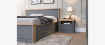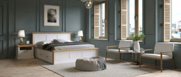 drveni krevet kolekcije Tara dostupan je u grafit sivoj ili bijeloj boji s dodatkom pacifičkog oraha.