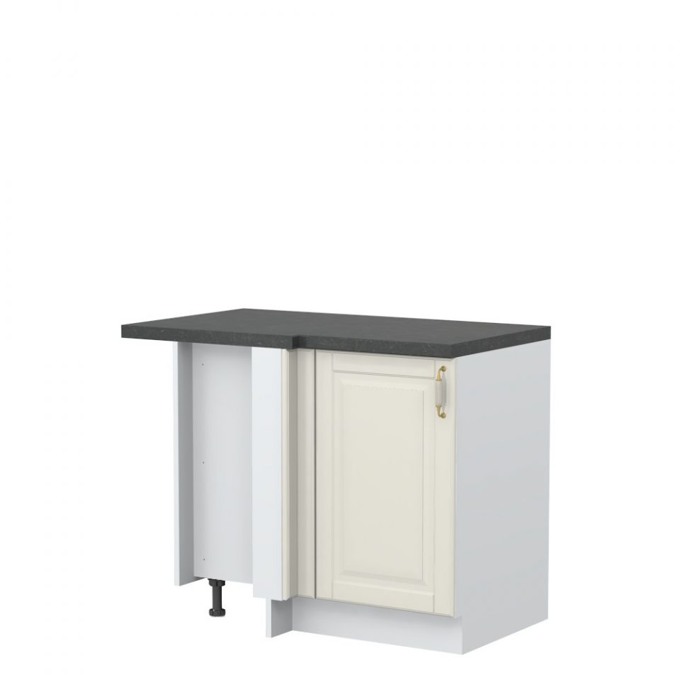 Kuhinjski donji kutni ormarić Evergreen ima jedna vrata. Ormarić ima ploču korpusa debljine 18 mm. Fronte su izrađene od MDF-a, UV lakirane i profilirane. Vrata imaju mekano zatvaranje i Hettich okovlje. Njegove čiste linije, izgled i kvaliteta impresionirat će vas. Radna ploča, postolje s brtvom i završne letvice uključeni su u cijenu.