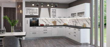 Izrađen je od visokokvalitetne pročišćene ploče, debljine 18 mm. Fronte su izrađene od MDF-a i profilirane. Kuhinja je kombinacija modernog i rustikalnog izgleda.