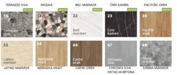 Radnu ploču debljine 4 cm možete odabrati između sljedećih boja: