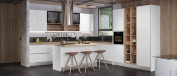 Boja korpusa je bijela. Ladice imaju tiho zatvaranje i Hettich okove. MDF fronte su lakirane najnovijom tehnologijom UV lakiranja kojom se postiže visok stupanj sjaja – 99,70%. Ova tehnologija premaza pruža četiri puta bolju otpornost na fizičke udarce i habanje od standardne boje.