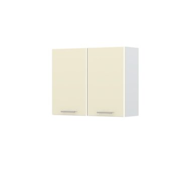 Viseći kuhinjski element Modern širine 90 cm izrađen je od ploče debljine 18 mm, boja korpusa je bijela. Ormarić ima dvoja vrata sa mekanim mehanizmom zatvaranja i dvije police. Vrata su na rubovima zaobljena. Fronte su izrađene od medijapana i UV lakirane.