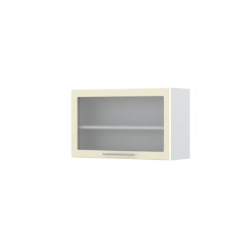 Kuhinjski gornji viseći ormarić sa staklom Modern sa kaljenim staklom debljine 4 mm s drvenim zaobljenim okvirom. Fronto možete odabrati u više boja. Obod je izrađen od pročišćene ploče debljine 18 mm, bijele boje. Ormarić ima jednu policu i mehanizam za mekano zatvaranje. Ormarić je širok 90 cm i visok 32 cm.