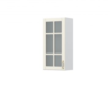 Kuhinjski viseći ormarić širine 45 cm Evergreen ima dvije police i staklena vrata. Izrađen je od visokokvalitetne iveral ploče, debljine 18 mm. Fronte su izrađene od MDF-a i profilirane. Kuhinja je kombinacija modernog i rustikalnog izgleda.