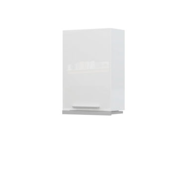 Kuhinjski gornji viseći ormarić za ugradnju teleskopskog modela nape Riva izrađen je od iveral ploče debljine 18 mm, boja korpusa je bijela. Fronte su lakirane najnovijom tehnologijom UV lakiranja s kojom postižu visok stupanj sjaja – 99,70%. Ova tehnologija pruža četiri puta bolju otpornost na fizičke udare i habanje od standardnog lakiranja. Fronte možete odabrati u dvije boje: