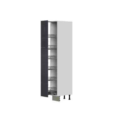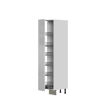 Infinity kuhinjski visoki ormarić za odlaganje hrane sa žičanim policama. Izrađena je od visokokvalitetne oplemenjene ploče debljine 18 mm. Fronte su izrađene od MDF-a i lakirane UV tehnologijom. Kuhinja je modernog izgleda i čistih linija. Egger radna ploča i postolje s brtvom uključeni u cijenu.
