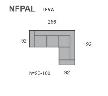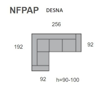 Dimenzije garniture su 256 x 192 x 90-100 cm. Dubina sjedala je 92 cm, a sjedala 55 cm. Visina sjedala je 43 cm.