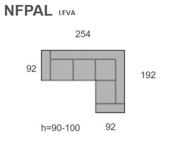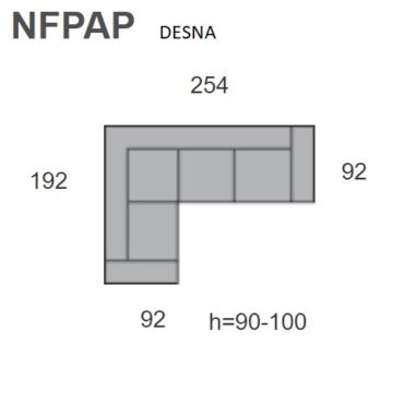 Dimenzije garniture su 254 x 192 x 90-100 cm. Dubina sjedala je 92 cm, a sjedala 55 cm. Visina sjedala je 43 cm.