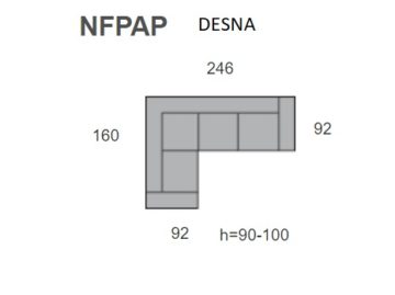 Dimenzije garniture su 246 x 160 x 90-100 cm. Dubina sjedala je 92 cm, a sjedala 55 cm. Visina sjedala je 43 cm.