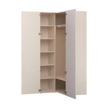 Kutni garderobni ormar iz kolekcije 4YOU FRESH dizajniran je za optimalno iskorištavanje prostora u kutovima prostorija, gdje je organizacija često zahtjevna. Odlikuje ga prostrana i inteligentno raspoređena unutrašnjost koja omogućuje pregledno pohranjivanje različitih predmeta, odjeće i dodataka. Prikladan je za spavaće sobe odraslih, kao i za mladenačke ili dječje sobe.