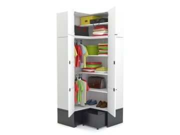 Kutni ormar Young users ima tri ladice i šipku za vješalice. Kompatibilan je proizvod jedinici za spremanje i podnom kutnom ladičaru Young users uz doplatu. Podni ladičar možete birati između dvije boje.