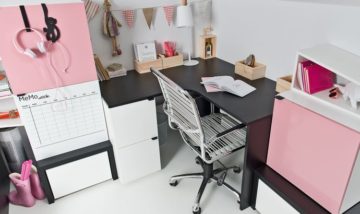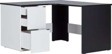 Suvremen crno-bijeli pisaći stol odlično če stajati u brojnim kutovima. Jednostavan je za kombiniranje, jer spaja elegantnu crnu i bijelu. Ima dvije ladice na lijevoj strani.