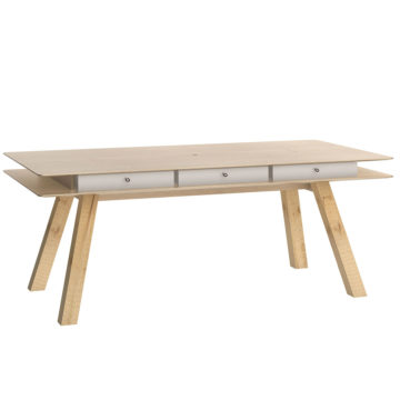 Komoda ima tri ladice i jedna vrata. Vrata i ladice tiho se zatvaraju. Izrađena je od kvalitetne iverice zaštićene vrhunskim melaminom. Dostupan je u bijeloj ili sivoj boji. Dimenzije (dužina x dubina x visina): 120 x 42 x 70 cm.