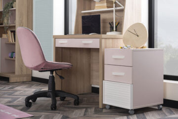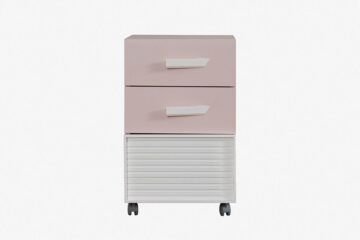 Ova komoda ističe se s dvije ladice s mekim zatvaranjem u ružičastoj boji, koje pružaju dovoljno prostora za odlaganje školskog pribora ili drugih sitnica.