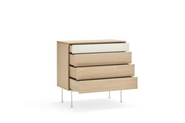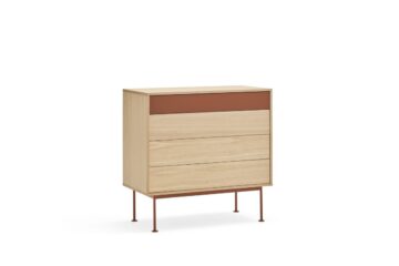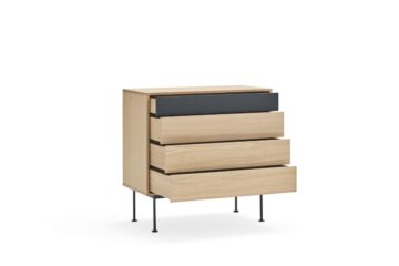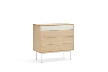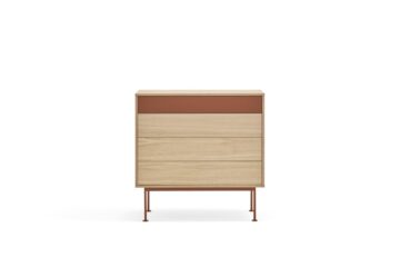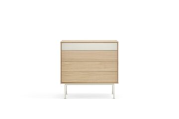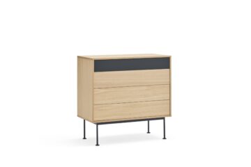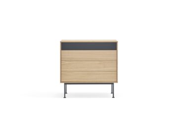 Komoda Yoko kombinira prirodnu toplinu drveta i moderan dizajn s pažljivo odabranim kontrastima boja. Njegov minimalistički dizajn i kompaktne dimenzije čine ga savršenim izborom za svaki dom, bez obzira na stil ili prostor. Metalne noge dodaju mu vizualnu lakoću i stabilnost.