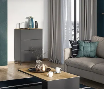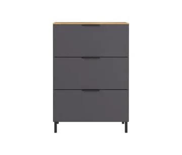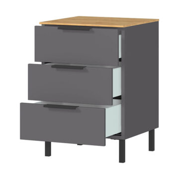 Grafitna boja tijela i replika pokrovne ploče od navarskog hrasta daju ladici moderan, au isto vrijeme topao izgled.