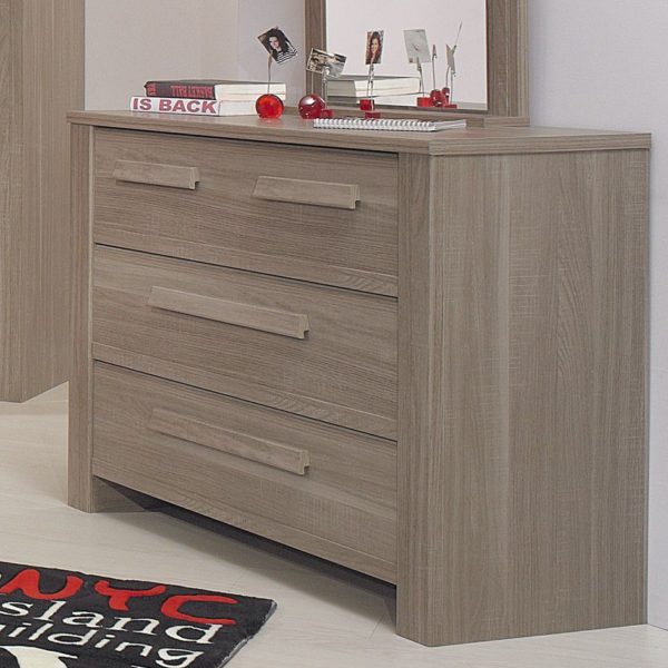 Ladičar Hangun je modernog dizajna u posebnoj boji hrasta. Ima tri ladice na kojima su ručke u istoj boji kao i cijela komoda. Svi rubovi su ABS obrađeni.