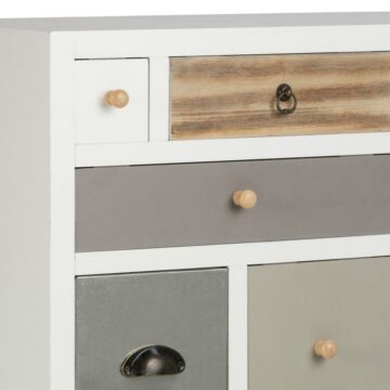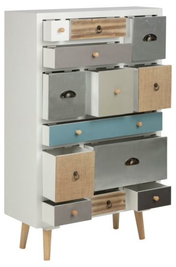Ladičar Thais sastavljen je od 13 asimetrično postavljenih ladica različitih boja što mu daje moderan i zanimljiv izgled. Korpus je izrađen od bijelo lakiranog drveta, a nogice od borovog drveta.