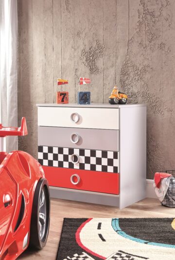 Za sve automobilske entuzijaste tu je Turbo ladica. To će pružiti trkaću atmosferu upravo u dječjoj sobi. Okvir ormara izrađen je od profinjenog iverala E1 kvalitete, debljine 18mm. Svi rubovi su ABS zaobljeni. Ladice ladica imaju mehanizam za meko zatvaranje.